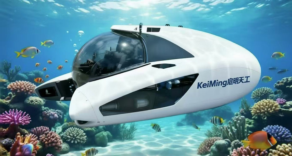 “KeiMing启明天工®”科研及观光型新能源潜水器,专为深海探索、海洋生态观测及高端水下文旅而设计。它结合了流线型的现代工业美学与顶尖的水下工程技术,为用户提供前所未有的“零扰动”海底沉浸体验。